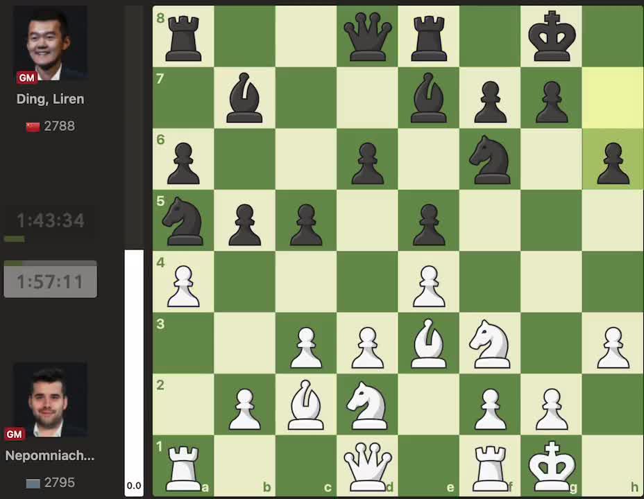 北京时间4月27日晚,2023年国际象棋世界冠军赛第13局在哈萨克斯坦首都阿斯塔纳结束,丁立人后手与涅波姆尼亚奇战和,双方总分战成6.5比6.5。