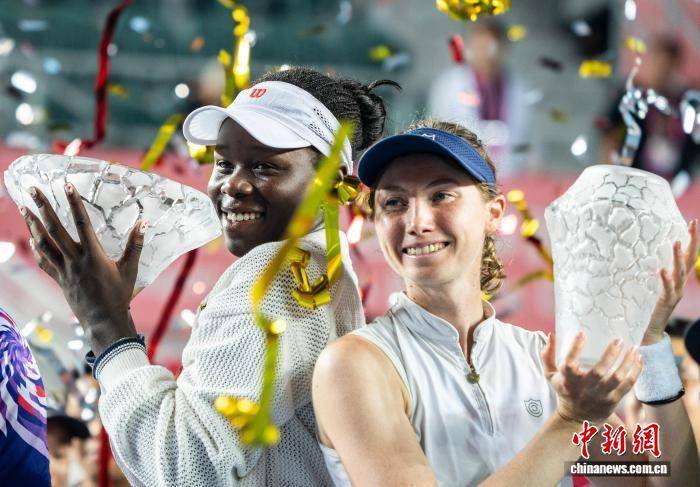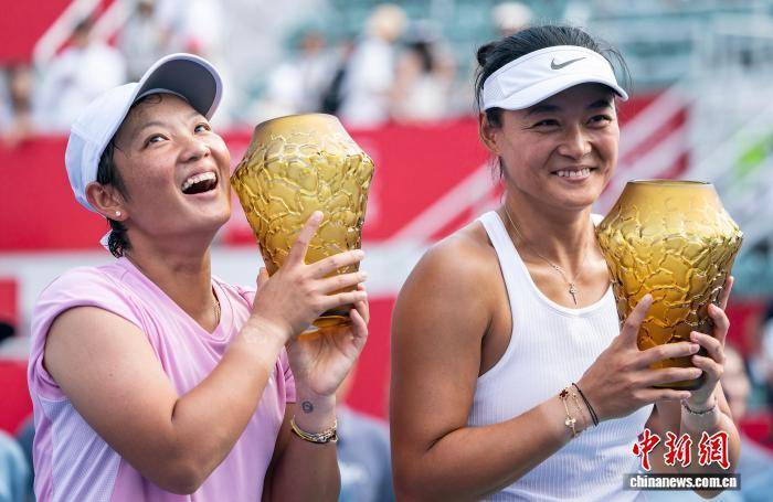 中国新闻网消息 11月2日,国际女子网球协会(WTA)250级别赛事——2025香港网球公开赛女子双打决赛和女子单打决赛先后在维多利亚公园网球场举行,中国组合王雅繁/蒋欣玗2:0战胜小堀桃子/本丹·比贝奇组合,夺得女双冠军;加拿大选手维多利亚·姆博科2:1战胜西班牙选手克里斯蒂娜·布克沙,获得女单冠军。图为王雅繁(右)和蒋欣玗捧起冠军奖杯。中新网记者 侯宇 摄