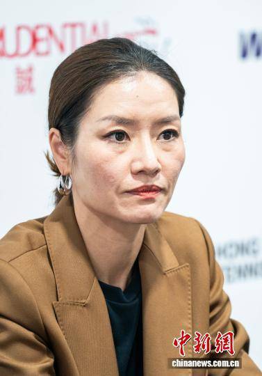 图为香港网球公开赛赛事总监、中国女子网球名宿李娜在双打决赛结束后接受采访。中新网记者 侯宇 摄 |