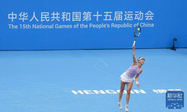 11月16日,第十五届全国运动会网球项目女子单打第二轮在广东横琴举行。