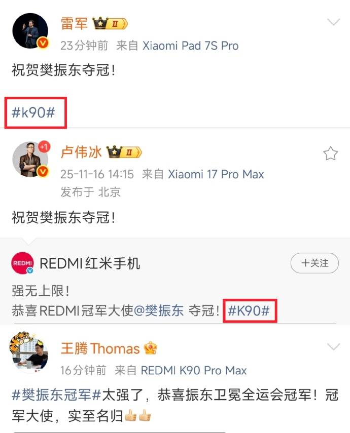 赛后,小米集团董事长雷军第一时间在微博发文:“祝贺樊振东夺冠!”,该动态引发全网关注。