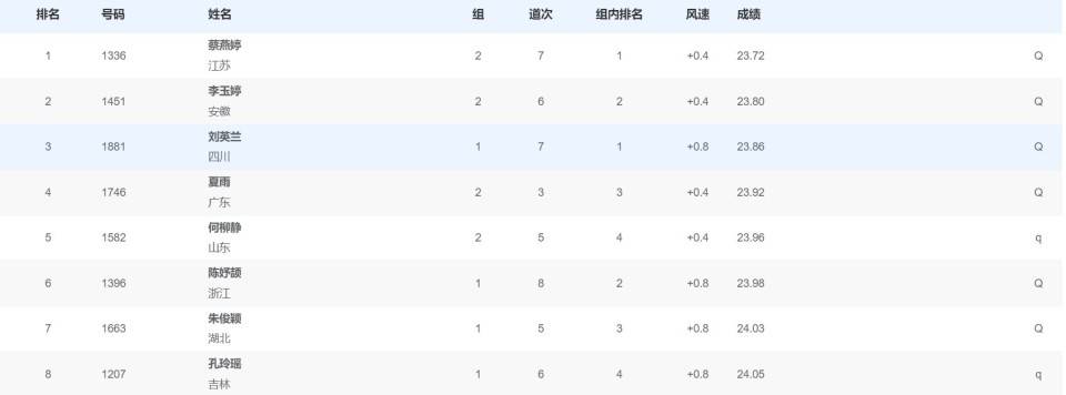 11月18日,全运会女子200米复赛进行。在此前一个比赛日刚刚创造亚洲100米青年纪录的陈妤颉,仅仅间隔13个小时就站在了200米复赛的跑道上。半决赛陈妤颉跑出了23秒98的成绩,排名小组第2位获得了直接晋级决赛的资格。