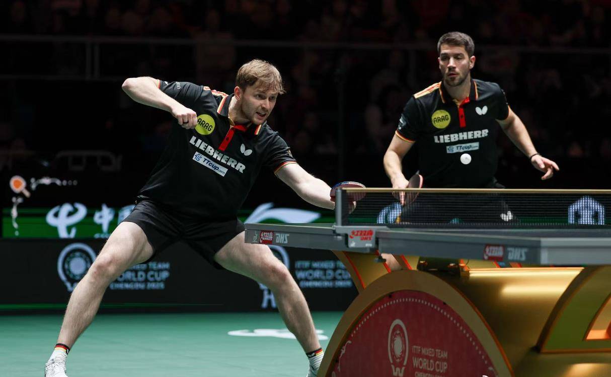随后的男双,出现一边倒,松岛辉空/户上隼辅以 11-4、11-2 直落两局击败杜达/弗朗西斯卡,日本组合通过强势发接发控制节奏,中远台相持能力明显占优,尤其第二局一度打出9-0开局,彻底压制德国名将弗朗西斯卡的反手特长。