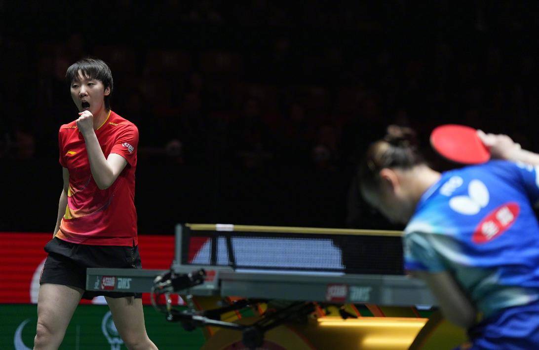 第二盘比赛,王曼昱为国乒拿到2分,首局局末救局点后拿下,非常提士气,第二局大比分领先,10-4居然连丢8分,浪费6个局点,自己发球被对方挑了一个,然后自己反手发球失误,很轻易丢了几分,自己把自己打紧张了,后面处理球进入对方的节奏,让对方的快速、凶狠的特点打了出来。