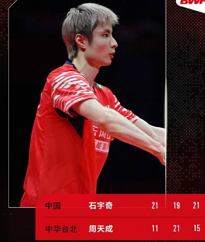 12月18日,世界羽联年终总决赛小组赛继续进行。在男单赛场的一场对决当中,世界第一石宇奇同周天成交手。本场比赛双方战满3局,石宇奇21-11、19-21、21-15战胜了周天成,取得了小组赛两连胜,提前锁定了一个四强席位。