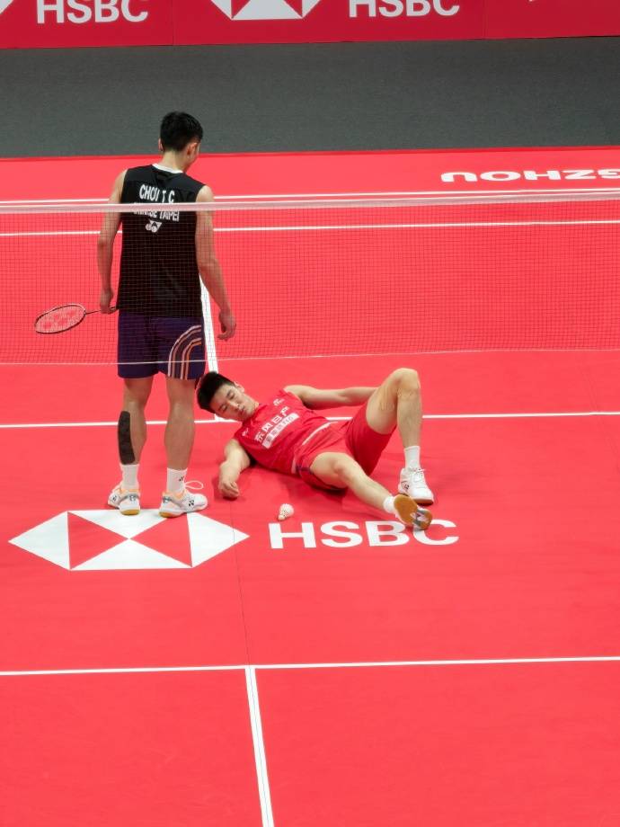 对手周天成主动协助沟通裁判并全程关切,展现竞技体育的人文关怀。因伤退赛后,其小组赛所有成绩被判定无效,此前已负于石宇奇、奈良冈功大。