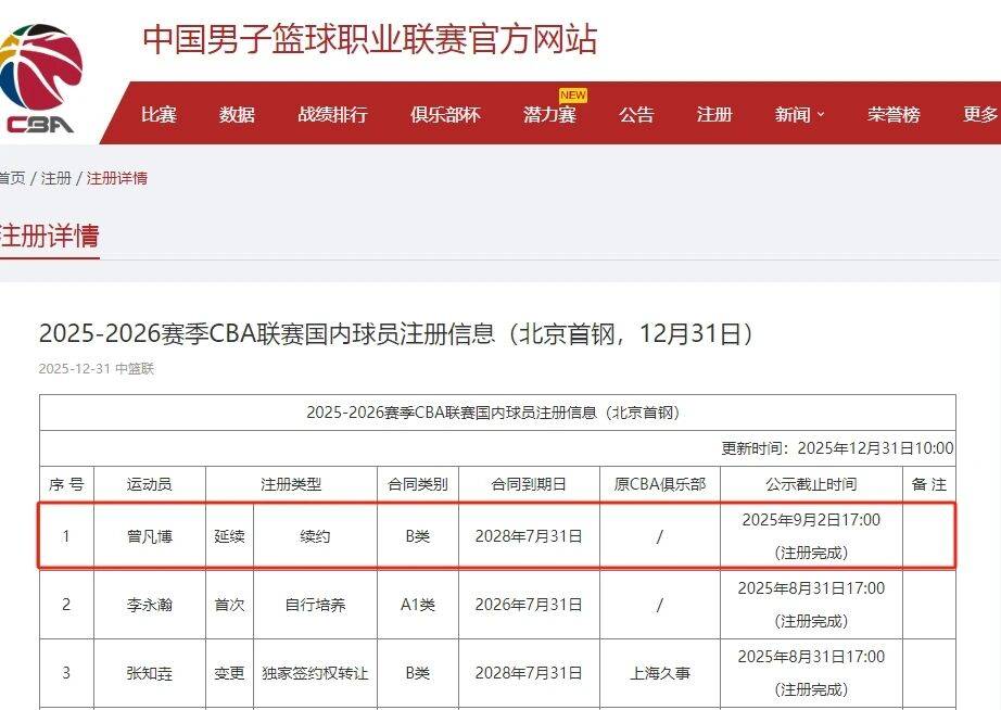 北京男篮在和广厦男篮的比赛中败北,遭遇了新赛季的第一场失利。不过需要注意的是,目前的北京男篮还不是完整体,缺少了曾凡博和陈盈骏,以及还有奥莫特离队的外援空缺。就在刚刚,CBA官方更新了球员注册名单,显示曾凡博已经完成了注册,他和北京男篮签署了三年B类合同。接下来1月1日和广东男篮的元旦大战,将会是曾凡博新赛季的首秀。曾凡博的能力就不用多说了,绝对是国内最好的锋线球员之一,上个赛季场均能够得到14.7分4.7个篮板1.9次助攻的数据。曾凡博的复出,肯定能够在攻防两端以及护框方面给北京男篮带来不小帮助。