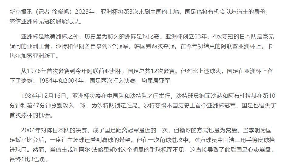这一次没有了主场喧嚣,没有VAR的缺失,这帮年轻人能替当年的前辈们,把那个失去的冠军拿回来吗?如今的日本队和中国队实力如何?