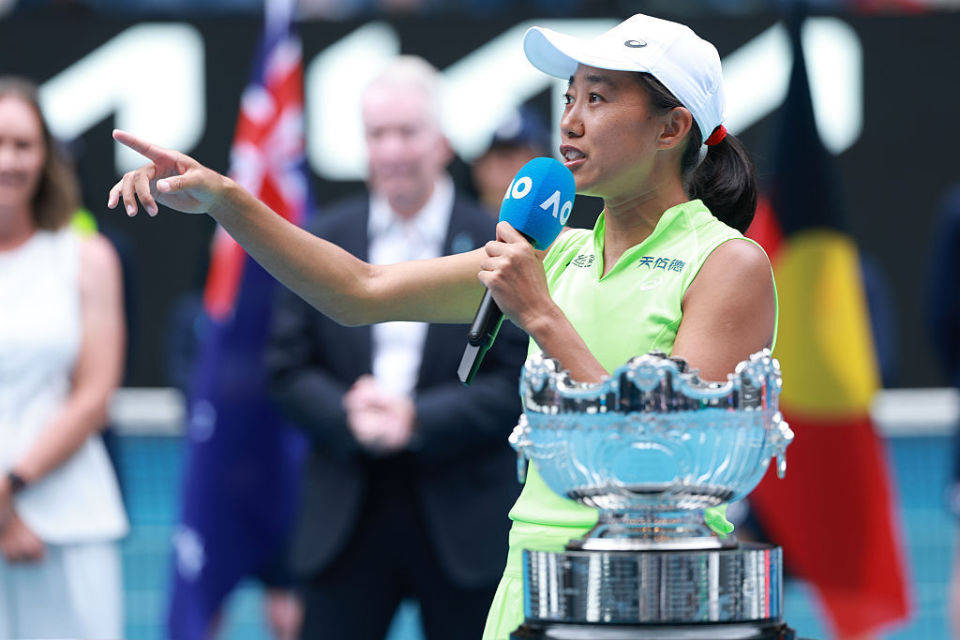 “今天之所以特别,还因为郑洁姐在看台上,20年前她在这里为中国赢得了第一个大满贯冠军,谢谢你给了我这么多帮助。”