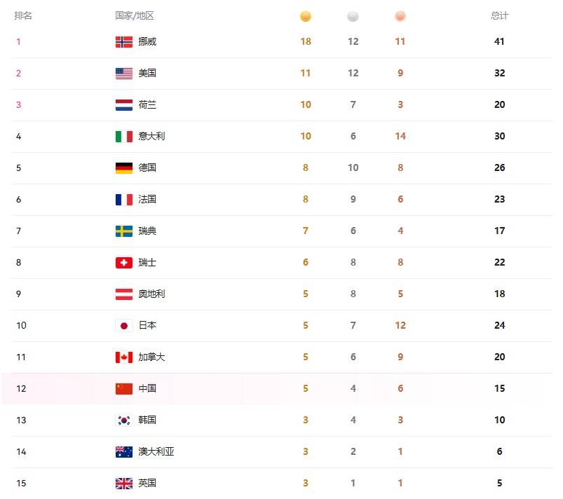 目前金牌数已经追平了日本,但银牌和铜牌都少于日本,所以依然是亚洲排名第2,总排名也一直在第12位。挪威从夺得17枚金牌后就创造了历史,目前来到了18枚金牌,继续创造新高。(知轩体育) |