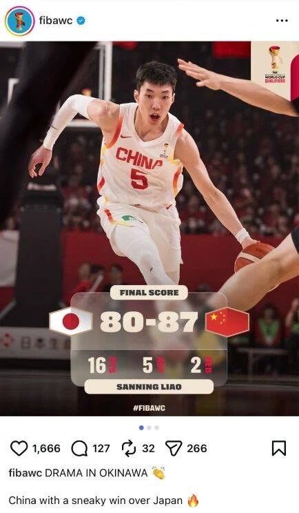 中国男篮在世预赛中逆转战胜了日本男篮,双方在FIBA体制下的交锋史也来到了20胜2负,中国男篮占据绝对优势。在这场比赛中,裁判暴露出了丑恶嘴脸,按照知名视频分析博主“王视角”发布的视频,当值裁判在这场比赛中发生了28次漏判和错判,全部有利于日本男篮。更让国内球迷愤怒的是,在比赛结束后,FIBA世界杯的Instagram官方账号居然用“sneaky”这样的词来形容中国男篮的逆转,这个词翻译过来是“鬼鬼祟祟”、“偷偷摸摸”的意思,意思是说中国男篮胜之不武。