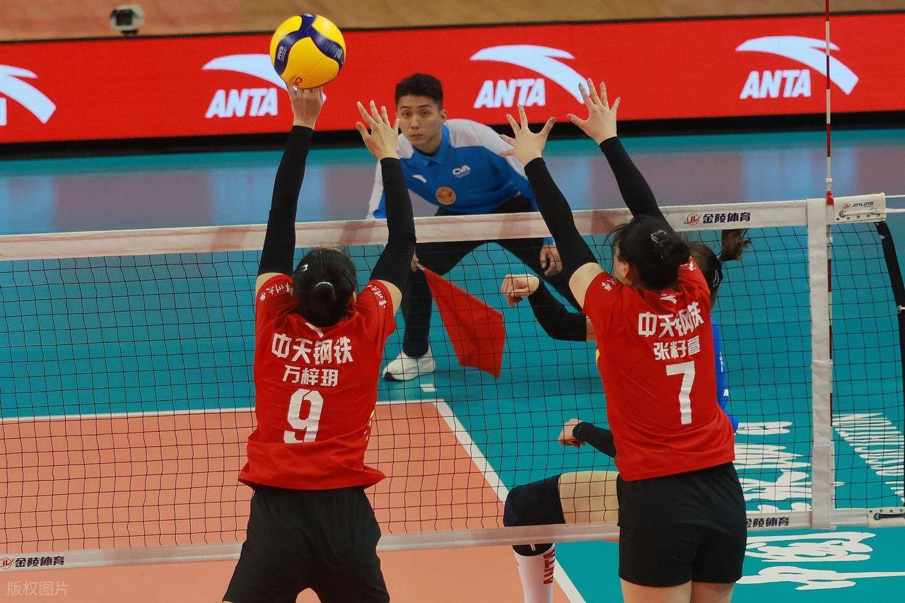 天津全场拦网得分12-6领先,孟豆、马丁内斯等人多次关键拦网封锁北京强攻。
