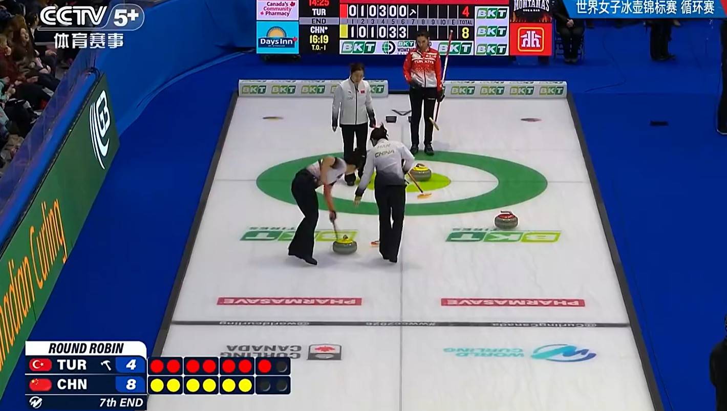 在开局阶段中国队在第4局出现失误,土耳其拿到3锋芒取得4-1的领先,好在第五局拿到3分将比分反超,韩雨两记精准旋壶兑现,状态不断提升。