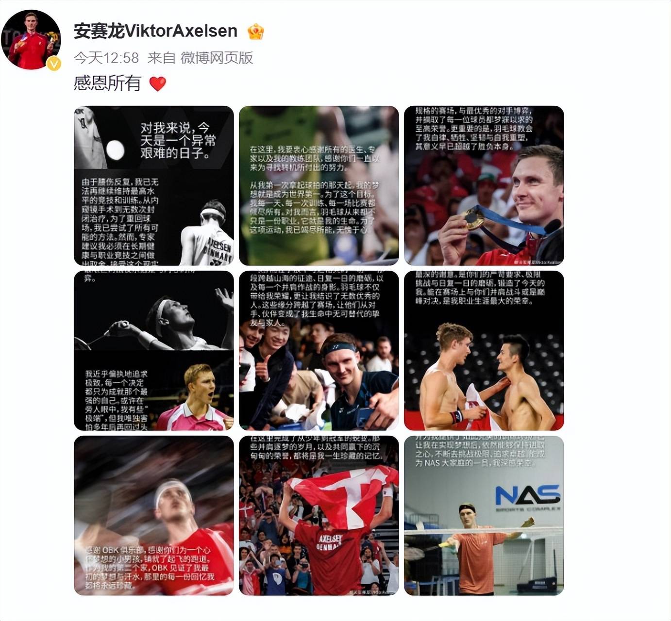 他表示生命定义为"羽毛球不仅是职业,更是我的生命。我已倾尽所有,无愧于心"。更是对未来以"山高水长,换一种方式在球场守望"暗示将继续投身羽毛球事业。