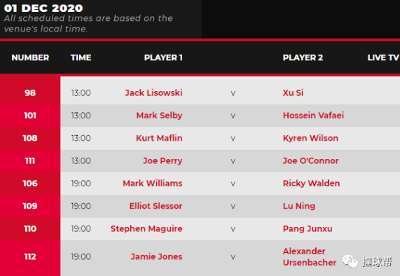 今天夜里,第三轮余下比赛将继续进行,塞尔比、凯伦·威尔逊登场,上轮四连破百的鲁宁领衔中国三将冲击16强。以下是今夜具体对阵(北京时间+8小时):