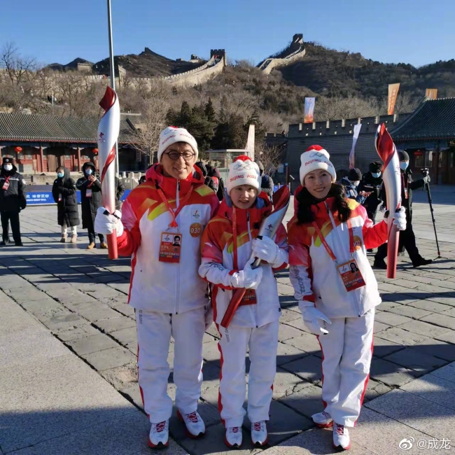 2月3日上午,北京冬奥会火炬接力在八达岭长城激情上演,成龙作为第30棒火炬手参与接力。随后成龙在个人微博中表示特别骄傲和自豪,并称和他交接的奥运会冠军吴静钰也是他的偶像。