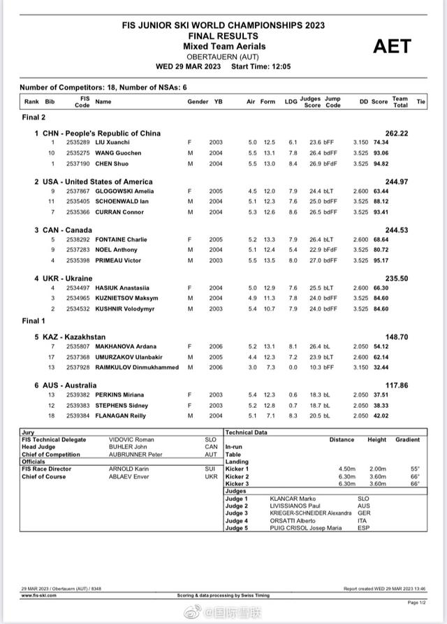 [体育] 恭喜!世界青年自由式滑雪空中技巧锦标赛 中国队包揽全部金牌