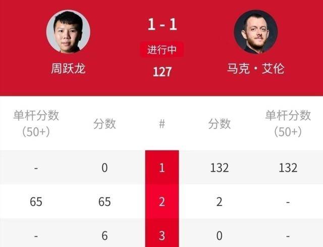 过往,周跃龙与“小钢炮”交手三次,战绩为1胜2负,处于劣势。这场决赛的上半场,他的发挥不佳,来到第二阶段展开强势反击。决赛第一局,“小钢炮”一开局就找到火爆进攻手感,他轰出单杆132分,132-0零封周跃龙,1-0火爆开局。