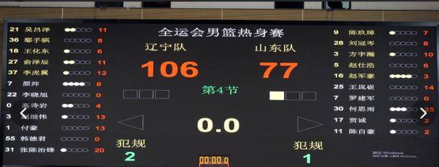 北京时间10月19日,2025年丹东全运热身赛第3日,东道主辽宁全运男篮主场对阵山东全运男篮。辽宁全运男篮一边倒压制对手,最终辽宁全运男篮凭借6人得分上双的团队攻势,轻松以106-77战胜山东全运男篮,辽宁全运男篮以3胜0负战绩收官。 数据统计 辽宁全运男篮:6人得分上双,赵继伟13分,付豪13分,张陈治锋20分,吴昌泽11分,俞泽辰11分,李虎翼12分。 山东全运男篮:3人得分上双,何思雨25分,王岚嵚14分,方宇瀚10分。 比赛回顾 在前两场比赛,辽宁全运男篮首场83-74战胜四川全运男篮,第二场加时95-93险胜北京全运男篮,赵继伟狂轰27分成为头号功臣。山东全运男篮首场72-104惨负北京全运男篮,第二场79-74险胜缺少三大核心的四川全运男篮。 本场辽宁全运男篮在前两节轻松碾压山东全运男篮,付豪与赵继伟内外双核的表现无可阻挡。首节辽宁全运男篮25-20领先,第二节打出30-13攻势,上半场付豪与赵继伟表现抢眼得分上双,山东全运男篮仅何思雨12分一人得分上双,辽宁全运男篮已经取得55-33领先22分优势。 辽宁全运男篮早早取得巨大领先优势,下半场比赛彻底进入练兵时间,辽宁全运男篮继续掌控局势扩大优势。张陈治锋和李虎翼表现出色,他们在热身赛持续得到锻炼进步显著,最终辽宁全运男篮106-77大胜山东全运男篮取得3连胜。 (文/醉卧浮生)