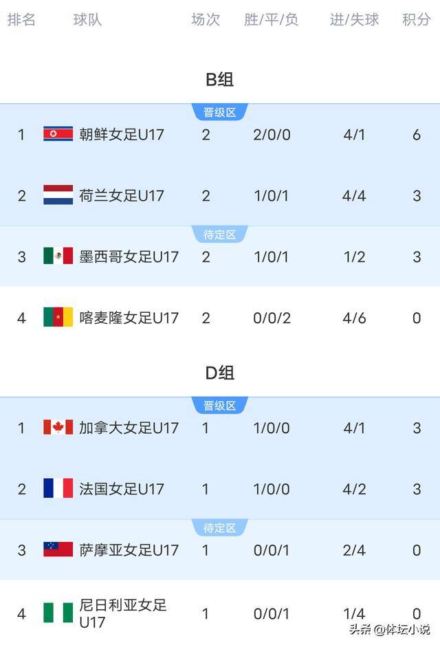 B组第二轮两场对决,朝鲜女足面对喀麦隆女足,虽然率先丢掉一球落入下风。但是朝鲜踢得非常有节奏,按部就班伺机寻找机会,很快在后面连进两球,并且在补时完成绝杀,值得一提的是这两个进球都是同一个人,助攻也是同一个,这样一来朝鲜拿到2连胜稳居榜首。荷兰女足面对墨西哥女足,在最后时刻丢球,未能守住0-0的比分,惨遭对手进球完成1-0的绝杀!