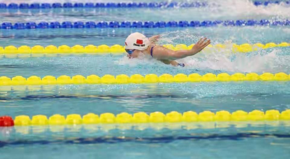 预赛张雨霏游出58秒84的成绩,排名第4位晋级半决赛。半决赛张雨霏是唯一一位游进58秒之内的选手,她以57秒22的成绩排名第1位晋级决赛。