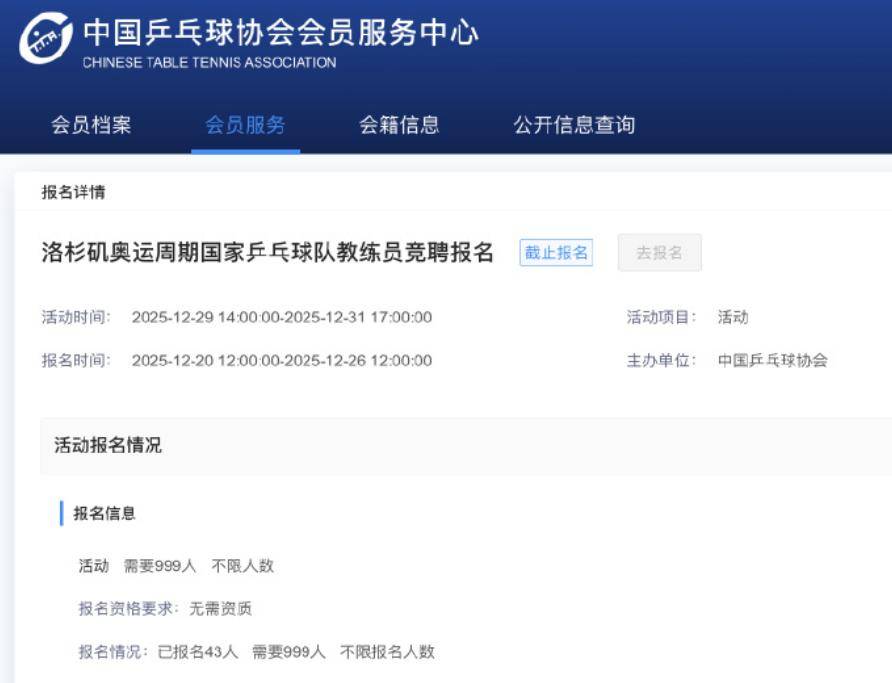 而在上届国乒教练组的竞聘中,共有24人走马上任,今年的岗位虽然扩充到了28个,但根据中国乒协相关的报名系统显示,参与竞聘的教练有多达43人,所以注定有15人被淘汰。