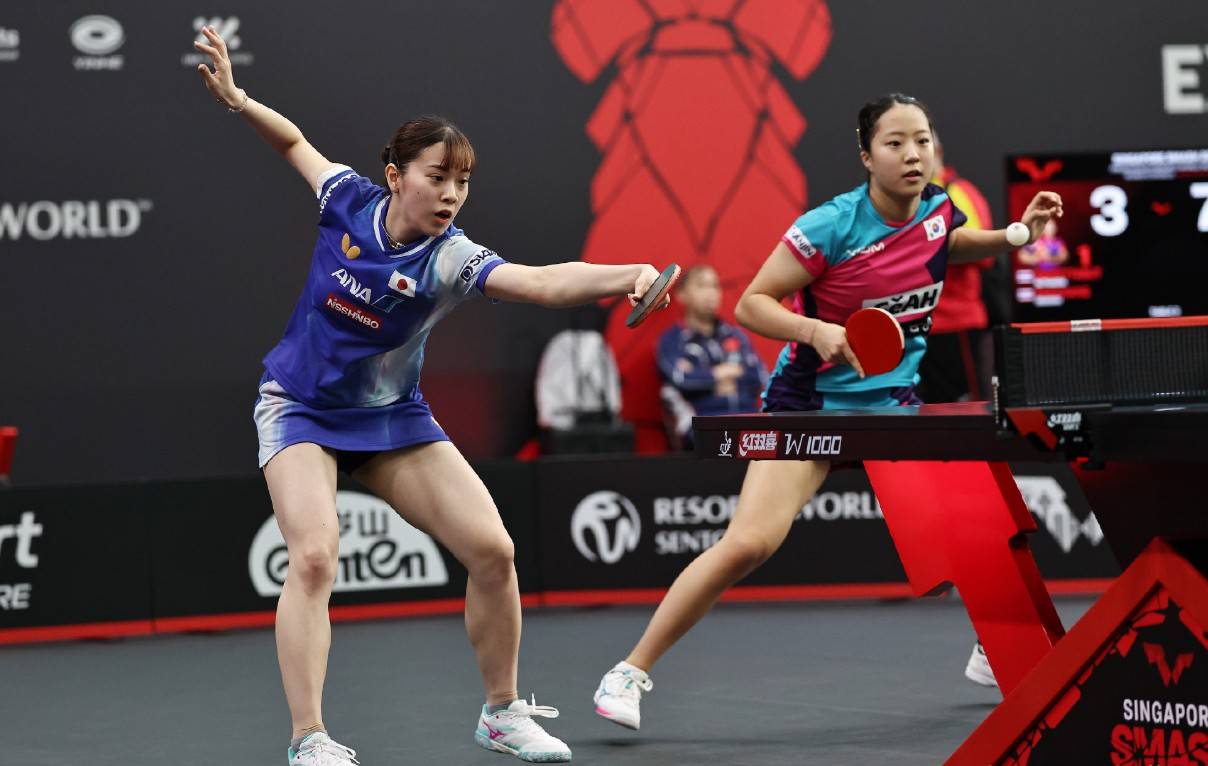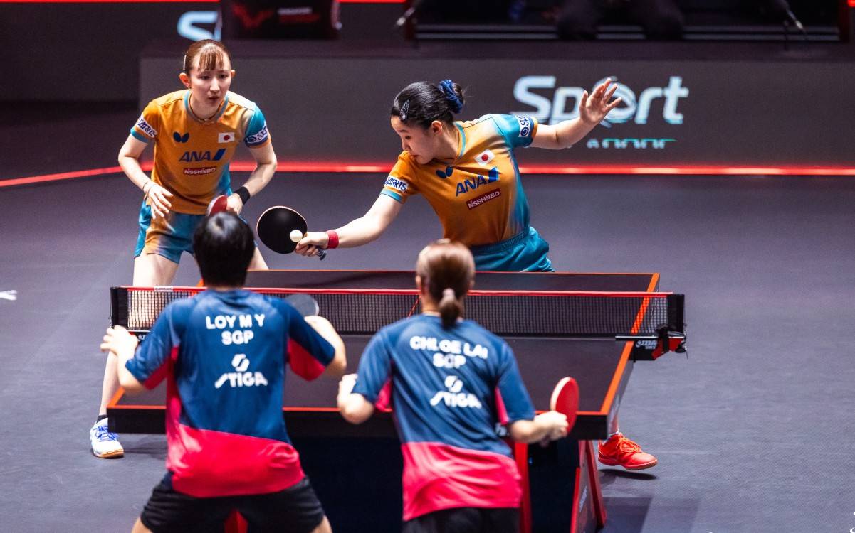 罗马尼亚与西班牙跨国组合迪亚科努/肖瑶茜以3-2逆转击败日本选手大藤沙月与韩国选手朱芊曦的搭档,五局比分分别为8-11、11-7、5-11、11-9、11-8。
