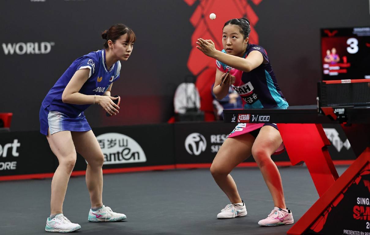 蒯曼/陈熠将在半决赛迎战日本强档早田希娜/张本美和,她们在今天的比赛,以3-0(11-6, 11-9, 11-9)完胜新加坡组合黎明映/黎嬣萱,首局一直掌控比赛进展,后面两局都在关键分拿下。