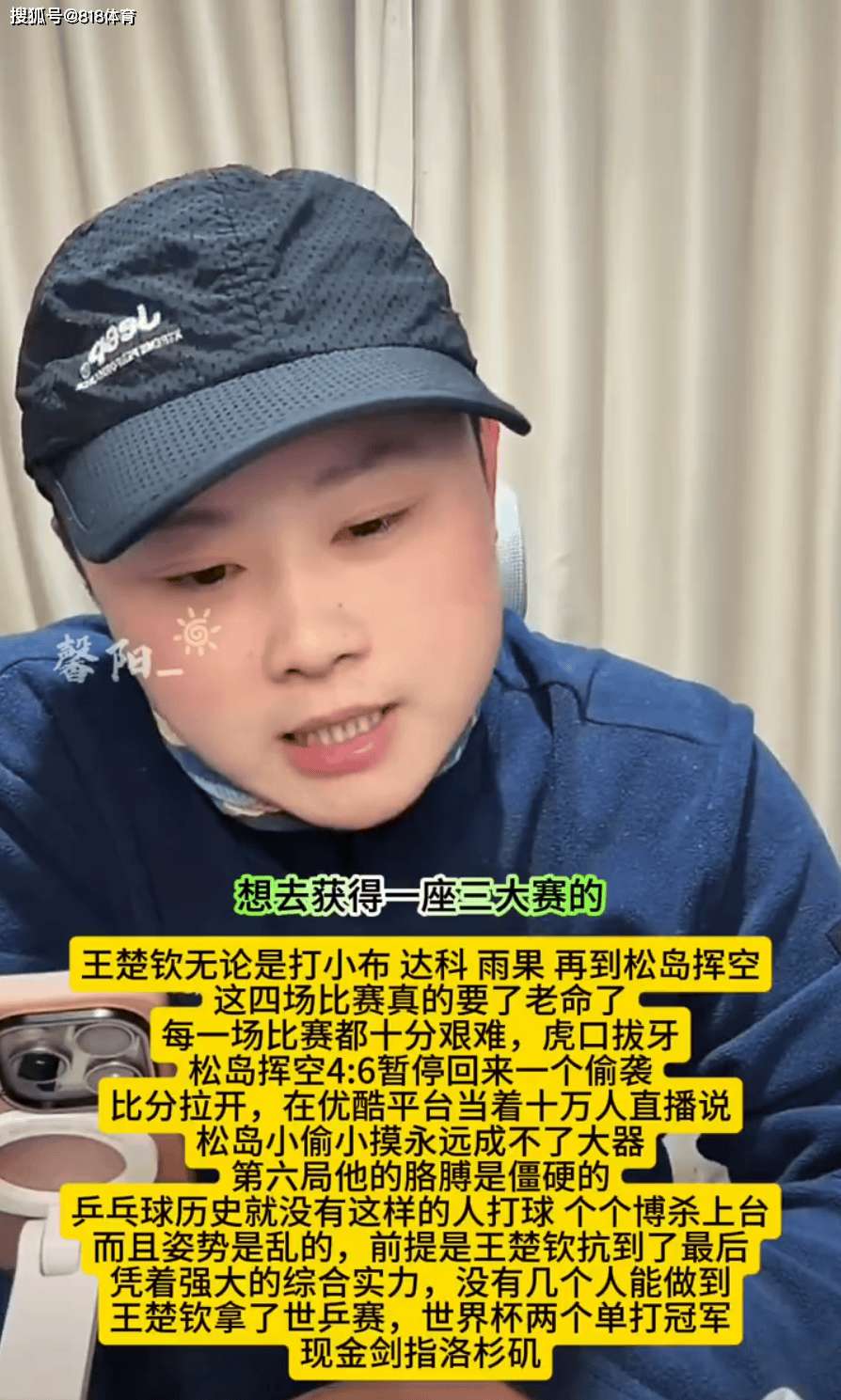 4月7日消息,4月5日结束的2026年澳门乒乓球世界杯男单决赛,王楚钦4比3逆转击败松岛辉空,首次夺得世界杯单打冠军。赛后,乒乓球名嘴致远在直播中表示,王楚钦夺冠连克四大高手实至名归,松岛辉空小偷小摸上不得台面。 编辑 王楚钦和18岁日本小将松岛辉空在男单决赛中陷入了激烈的较量,第一局,松岛辉空更快地进入状态,以11-9拿下。 第二局,王楚钦一路将比分追到了10-10,关键时刻他顶住巨大压力,以18-16扳回一局,大比分变成了1-1。 第三局,松岛辉空发球出现违规,被裁判判罚罚分后挑战失败,松岛心态出现波动失误频频,王楚钦连续得分,以11-8拿下。 编辑 第四局,虽然王楚钦挽救两个局点,但松岛辉空以13-11拿下,2-2。 第五局,松岛辉空抓住机会以11-8再下一城,王楚钦大比分2-3落后。 第六局,王楚钦在打成4-4之后连得7分,以11-4拿下松岛辉空,将比赛拖入了决胜局。 第七局,王楚钦保持了强大的进攻节奏,以11-8成功拿下,也第一次夺得世界杯冠军。 编辑 赛后,乒乓球名嘴致远老师在直播时点评道:“王楚钦无论是打小布 达科 雨果 再到松岛挥空,这四场比赛真的要了老命了,每一场比赛都十分艰难,虎口拔牙。王楚钦打了世界前十,没有一个好打的,太艰难了! 今天其实他一度是非常被动的,直到决胜局4-6落后,随着松岛辉空的那个暂停,发了 一个长球的偷袭,比分不断拉开。我在优酷平台当着十万人直播间说,松岛小偷小摸永远成不了大器。” 编辑 恭喜王楚钦夺冠!整个过程,第五局到第六局比分拉开,我说松岛辉空的胳膊是僵硬的。为什么?乒乓球历史就没有这样的人打球,随便打随便来,不可能,你的肌肉一定是僵硬的,你个个博杀上台,而且姿势是乱的,但前提是王楚钦扛到了最后,王楚钦凭着他强大的综合实力扛到了最后,有几个人能做到?今天抵挡住松岛辉空这样的搏杀。 王楚钦现在拿了埃文斯杯世界杯,去年多哈世乒赛也拿了,你们听清楚,王楚钦现在拿了两个单打冠军,现在他在整个洛杉矶奥运周期高人一等。”(818体育)