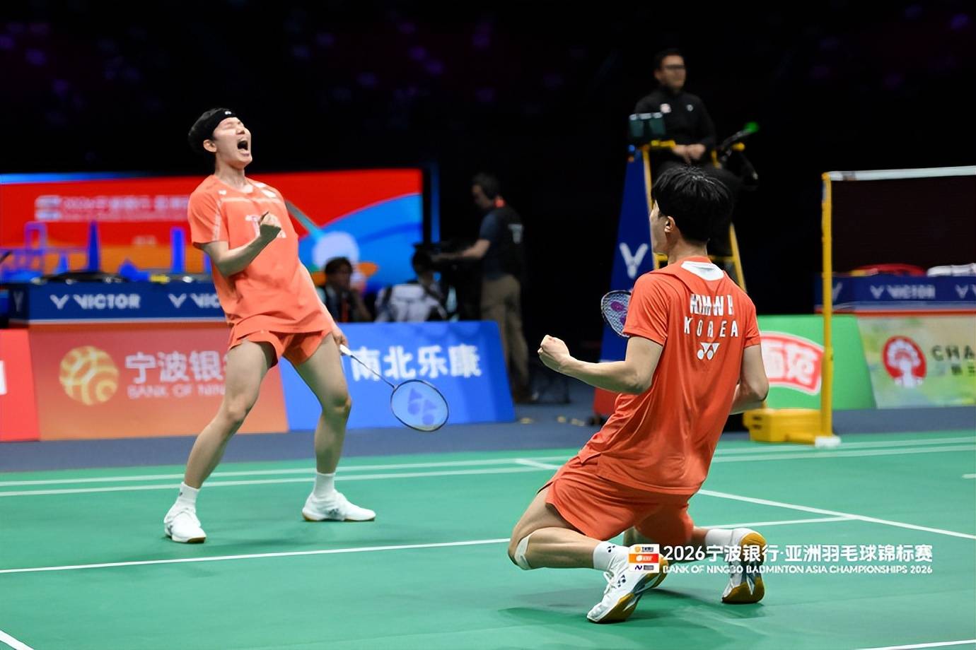 男双决赛,韩国组合徐承宰/金元浩以21-13、21-17直落两局击败队友姜珉赫/奇东柱,强势夺得冠军。