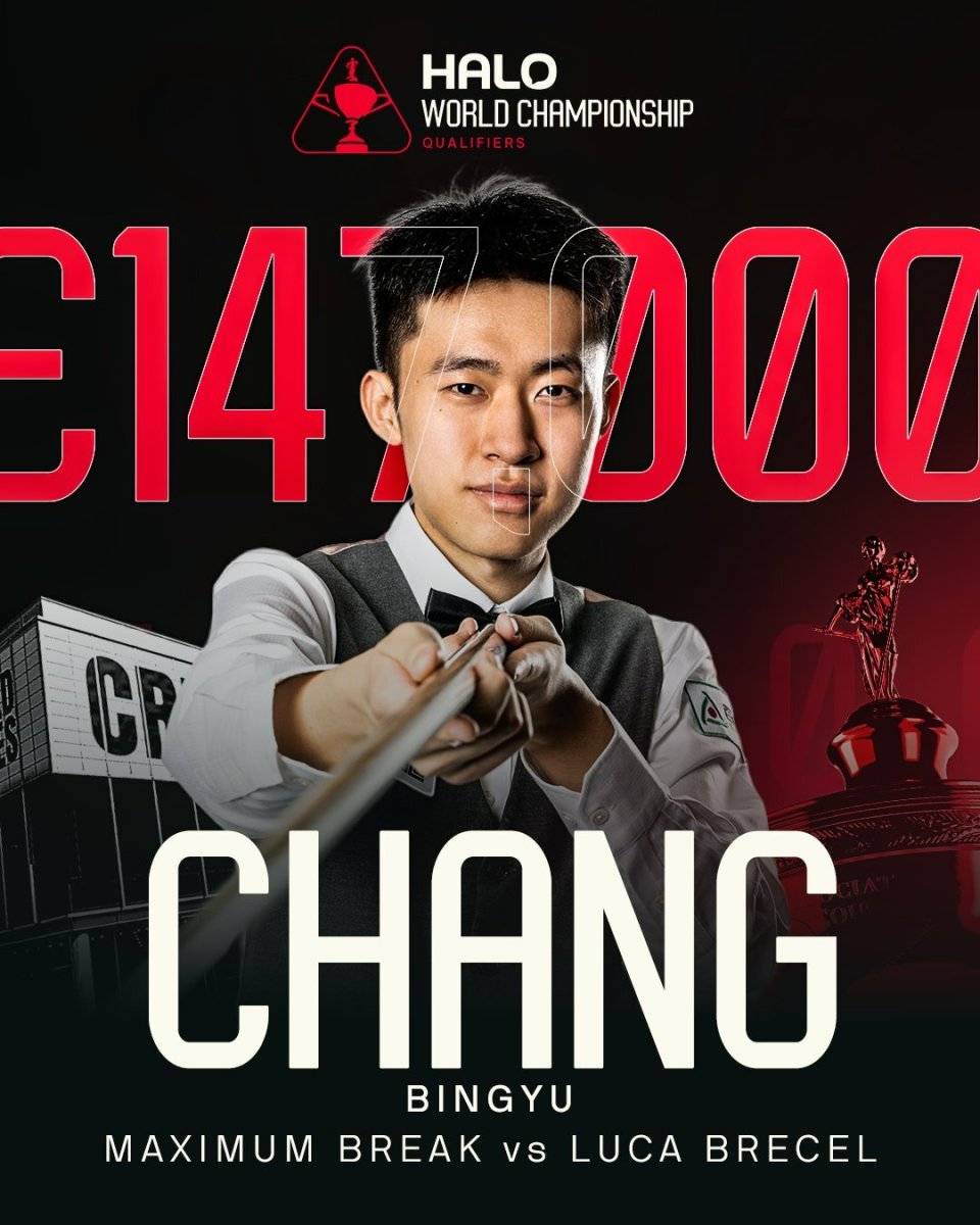 常冰玉在第9局迎来了自己的高光时刻,他通过长台进攻上手,围绕黑球开始展开攻势。在击打第7颗黑球完美K球之后,场面变得简单起来。此后常冰玉稳扎稳打,完成了这杆147分满分杆。在第一阶段结束后,5-4领先于布雷塞尔。