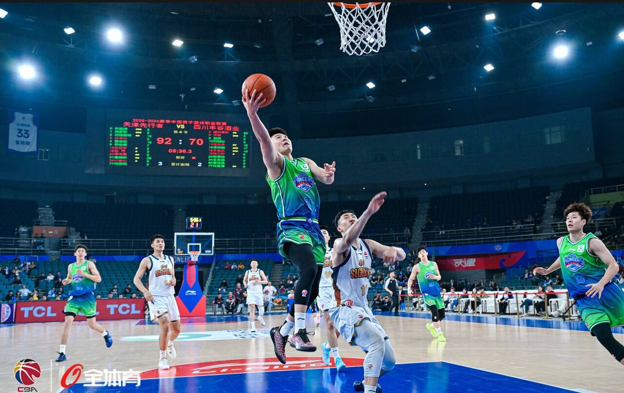 天津队全场压制四川队,核心外援詹姆斯砍下26分12篮板,雷诺兹贡献16分4篮板,哈姆雷特12分6篮板7助攻,国内球员计岩松得到11分。