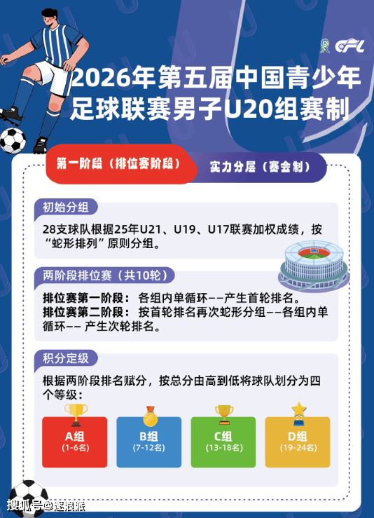 【1】第一阶段为排位赛:采取赛会制模式,目的是进行实力分层,包括5轮分组赛、5轮排名赛。(1)分组赛上,28队分成了五组,其中三组6队,两组5队,进行组内单循环,每队进行4-5场比赛,决出小组排名,随后按照积分、净胜球、进球数、红黄牌决出总排名。(2)排名赛:根据分组赛的总排名,再次蛇形分组,进行组内单循环,也是每队踢4-5场比赛。