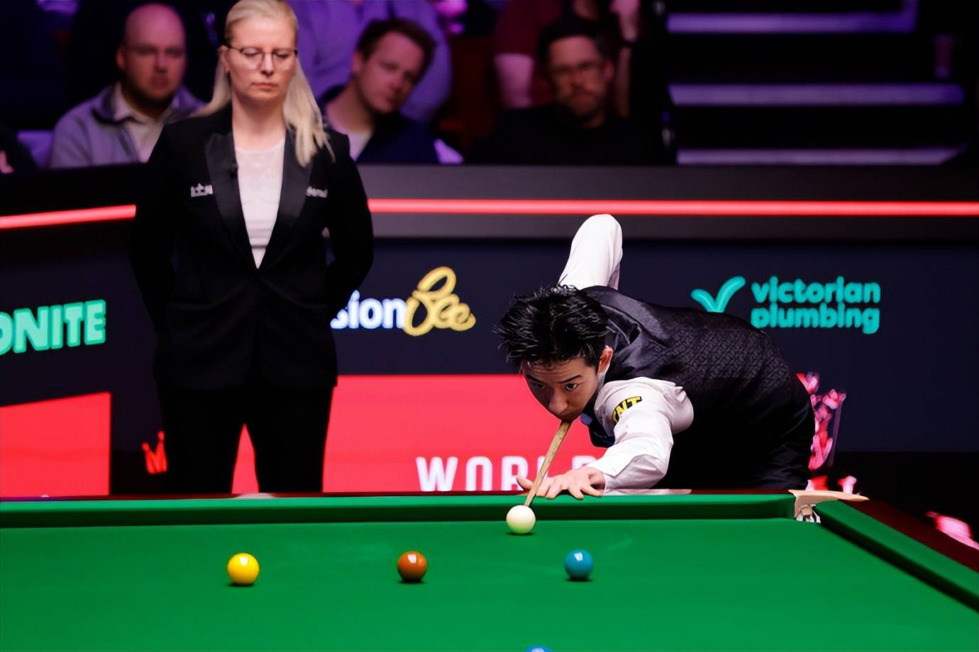 同时段进行的另外一场比赛,中国选手吴宜泽4-4战胜马克·塞尔比。塞尔比开场状态火热,连续轰出单杆123分和124分,取得2-0领先。
