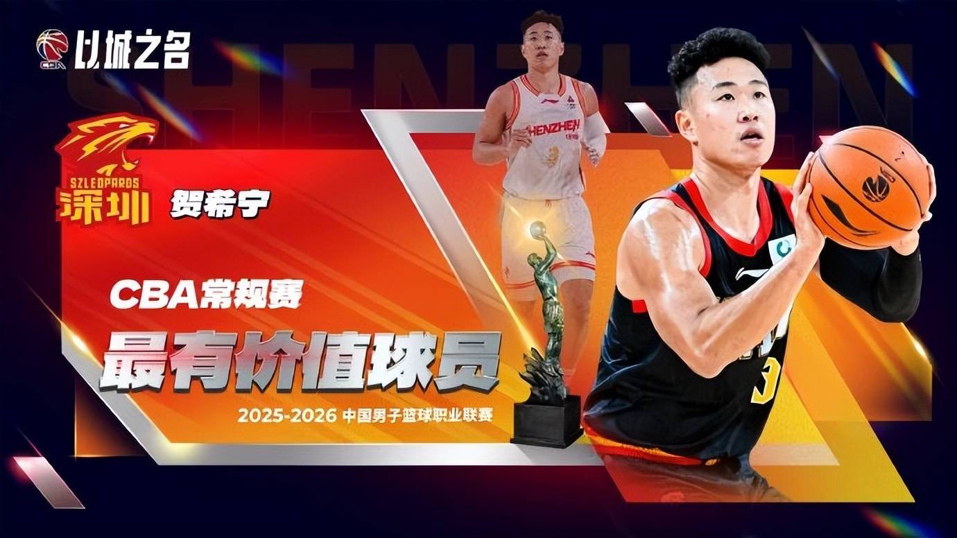 常规赛各大奖项中最重要的一个奖项,就是MVP的评选了,本赛季被深圳男篮的贺希宁获得。本赛季是贺希宁彻底爆发的一个赛季,场均能够得到20.1分4.9篮板3.8助攻1.5抢断的全面数据,投篮命中率48%,三分球命中率41.6%,罚球命中率82.7%。也正是在贺希宁的帮助下,深圳男篮的排名高居第三位,成为本赛季的最强黑马。贺西宁荣获常规赛MVP的奖项,实至名归!